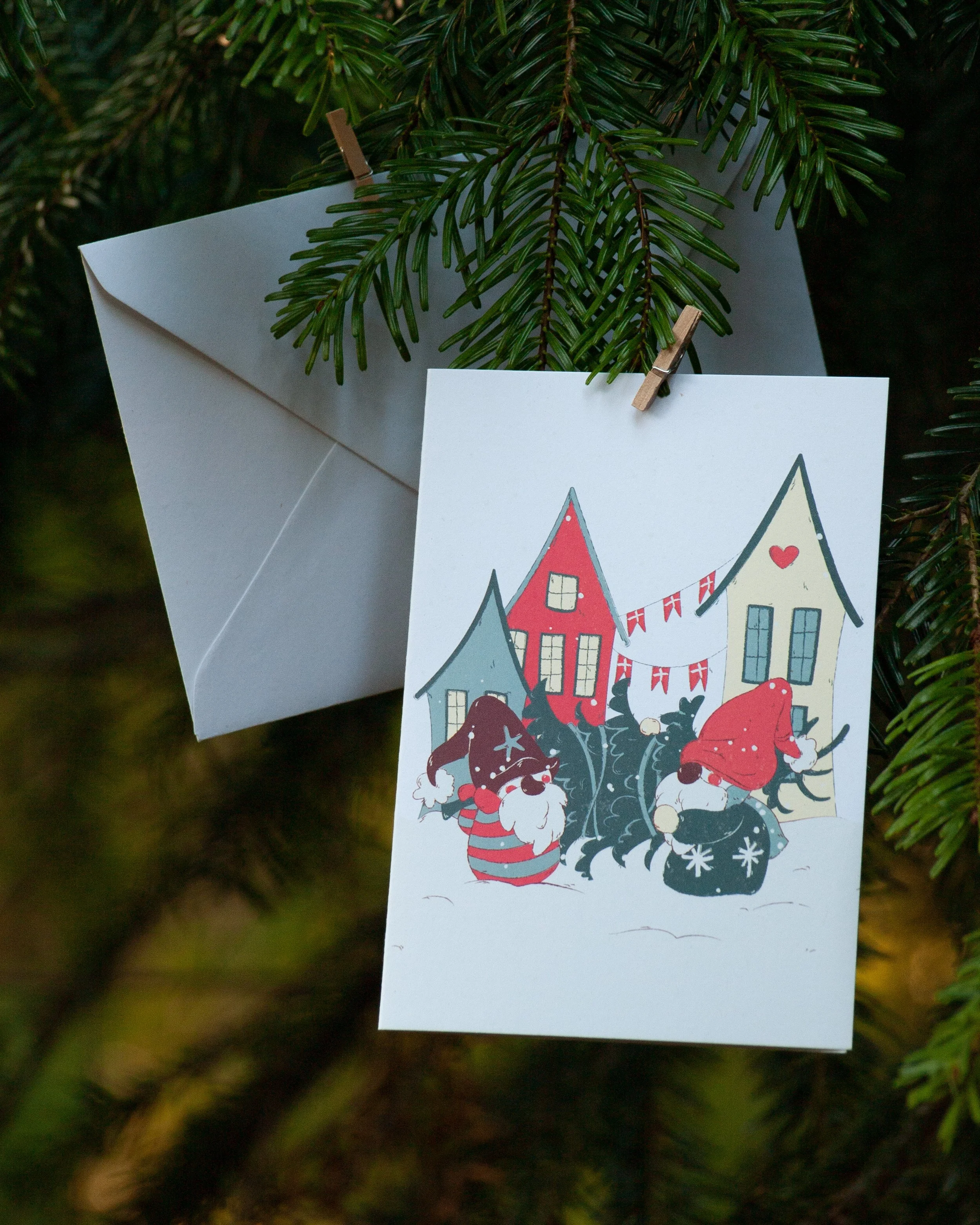 Radostina (oprindelig fra Bulgarien) er uddannet grafiker, men har siden 2015 arbejdet primært med illustration og i 2019 begyndte hun at skabe sine egne illustrerede produkter: plakater, postkort, julekort, klistermærker, kalender osv. Hendes humoristiske postkort fortæller, hvordan det er at bo i Danmark som udledning. Alt er trykt på genbrugspapir og pakket med papir og papemballage, så er der minimum skrald og spild.